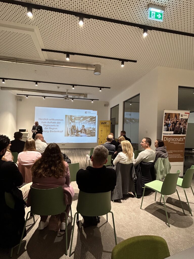 Azubis als Innovationsmotor: Im Coworking-Space Rivvers fiel am 11. März 2026 der Startschuss für die Umsetzung des bundesweiten RKW-Projekts Digiscouts® am Wirtschaftsstandort Marburg-Biedenkopf. Die rund 30 Auszubildenden, Ausbilder:innen und Unternehmensvertreter:innen der beteiligten Betriebe wurden dazu offiziell von Landrat Jens Womelsdorf begrüßt.
