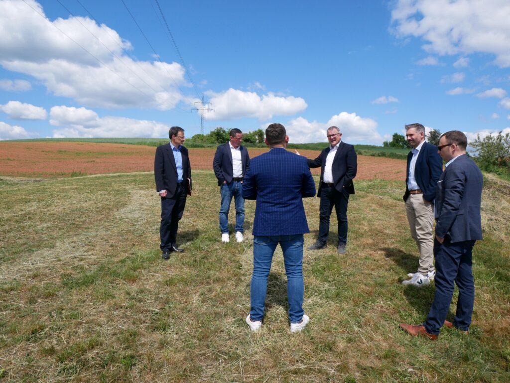 Nachhaltigkeit war auch ein wichtiges Thema bei der zweiten Station der Tour der Wirtschaftsförderer von Kreis und Land, doch das Zukunftsprojekt bei Münchhausen weist noch weitere starke Ansiedelungsargumente auf. Sofort bebaubare Gewerbegrundstücke von bis zu 6,5 Hektar, schnell und flexibel handelnde Akteure sowie eine breite politische und gesellschaftliche Unterstützung in der Region: Das künftige interkommunale Industrie- und Gewerbegebiet „B236/B252“ bei Münchhausen bietet auf insgesamt rund 17 Hektar mitten in Hessen optimale Voraussetzungen auch für große und internationale Unternehmen. An der Kreuzung der zwei teils neugebauten Bundesstraßen 236 und 252 – und dadurch mit direktem Anschluss an die Autobahnen Richtung Frankfurt, Kassel oder Köln – haben vor kurzem die ersten Erschließungsarbeiten begonnen. Weil die beteiligten Kommunen Münchhausen, Battenberg und Burgwald eng zusammenarbeiten, konnten die Planungen in Rekordtempo umgesetzt werden.